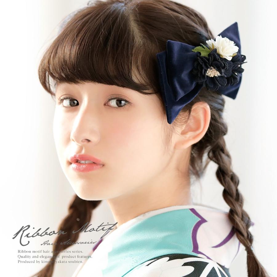 髪飾り リボン 卒業式 和装 濃紺色 ネイビー 白 花束 ベルベット ビロード コーム 髪留め 成人式 振袖 袴 ヘアアクセサリー 日本製 Kaz6113tw 3116 きもの館 創美苑 通販 Yahoo ショッピング